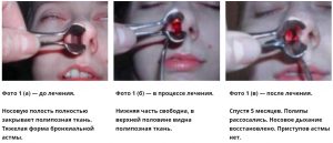 В дополнение пациентам тщательно промывают носовую полость инновационными методами. Промывание сокращает в размерах гипертрофированные из-за полипов носовые раковины.