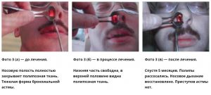 Наш метод помог не одной тысяче пациентов при рассасывании полипов и избавления от бронхиальной астмы. Мы выделили его основные преимущества. Они заключаются в отказе от антибиотиков, которые требуют длительного восстановления после лечения. Также важно, что вся процедура идёт в амбулатории. Больной не прикован к больничной койке.
